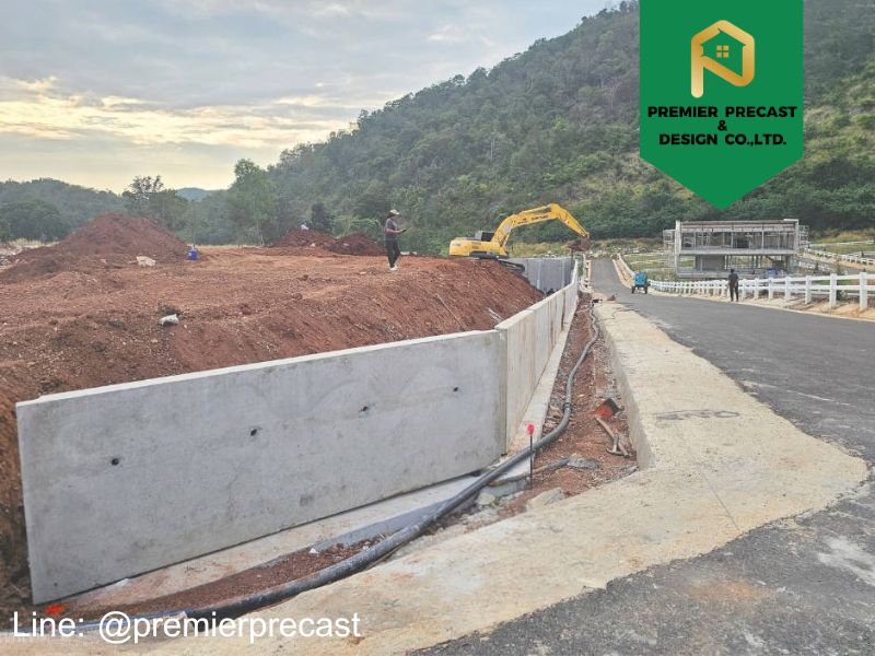กำแพงกันดิน กำแพงกันดิน คือ โครงสร้างที่สร้างขึ้นเพื่อรองรับและต้านแรงดันของดินในพื้นที่ที่มีระดับดินต่างกัน ช่วยป้องกันไม่ให้ดินพังทลาย ดินสไลด์ หรือดินทรุดตัว ทำให้พื้นที่มีความมั่นคง แข็งแรง และปลอดภัยต่อการใช้งานในระยะยาว ดีไซน์ได้ตามรูปแบบโครงการ ปรับขนาด ความสูง ความหนา ให้เหมาะกับหน้างาน ช่วยเพิ่มมูลค่าให้โครงการ เนื่องจากโครงสร้างที่มั่นคงและปลอดภัยสร้างความน่าเชื่อถือให้กับเจ้าของโครงการและผู้ใช้งาน ทำให้โครงการดูมีมาตรฐานและพร้อมรองรับการใช้งานระยะยาว ทั้งยังช่วยสร้างความพึงพอใจให้กับผู้ลงทุน ผู้รับเหมา และผู้พักอาศัย ช่วยเพิ่มความเรียบร้อยและความสวยงาม โครงสร้างดูเป็นระเบียบ เหมาะกับงานโครงการที่ต้องการภาพลักษณ์ที่ดี